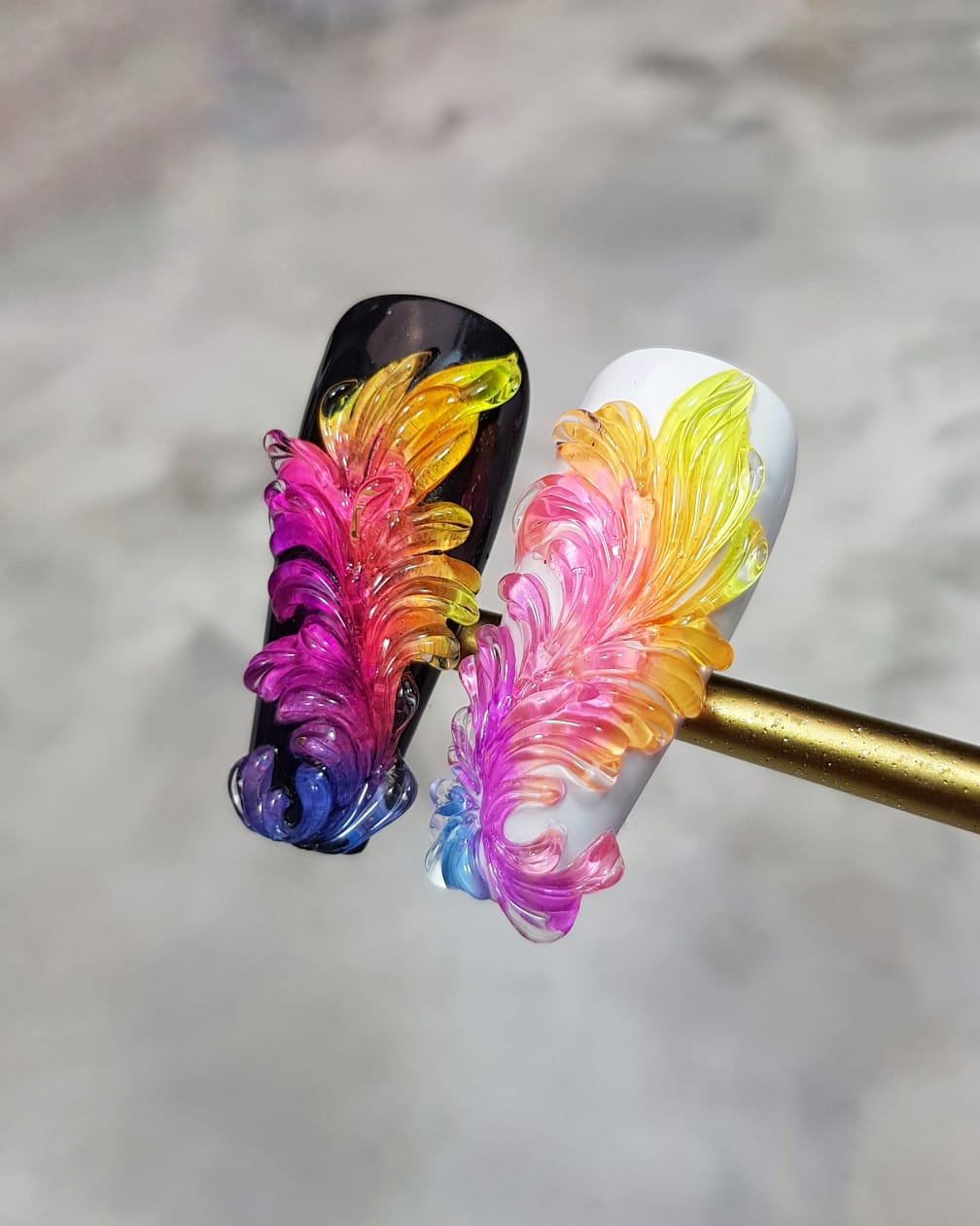 Our 3D Crystal Gel is perfect for creating beautiful 3D designs to your nails such as flowers, bows, swirls, etc. This 3D Crystal Gel has a "no tacky layer" formula, is crystal clear and of medium viscosity which makes it easy to maneuver. Get creative with this unique formula! We love to see it!