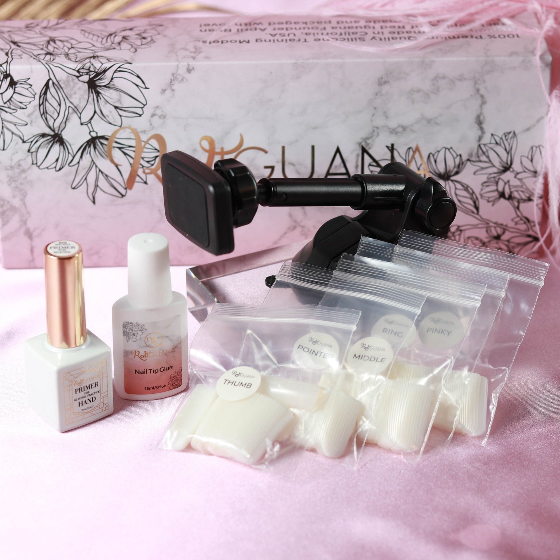 *Instructions: Apply a thin layer of Red Iguana Primer for Silicone Hand onto the silicone nail bed and let it dry for 10 seconds. Insert the base nail tip into the cuticle pocket as deeply as you can. Apply a small amount of glue between the nail tip and silicone finger and gently press the nail to the nail bed. Hold for 30-60 seconds. Make sure to remove any glue excess from the cuticle area.