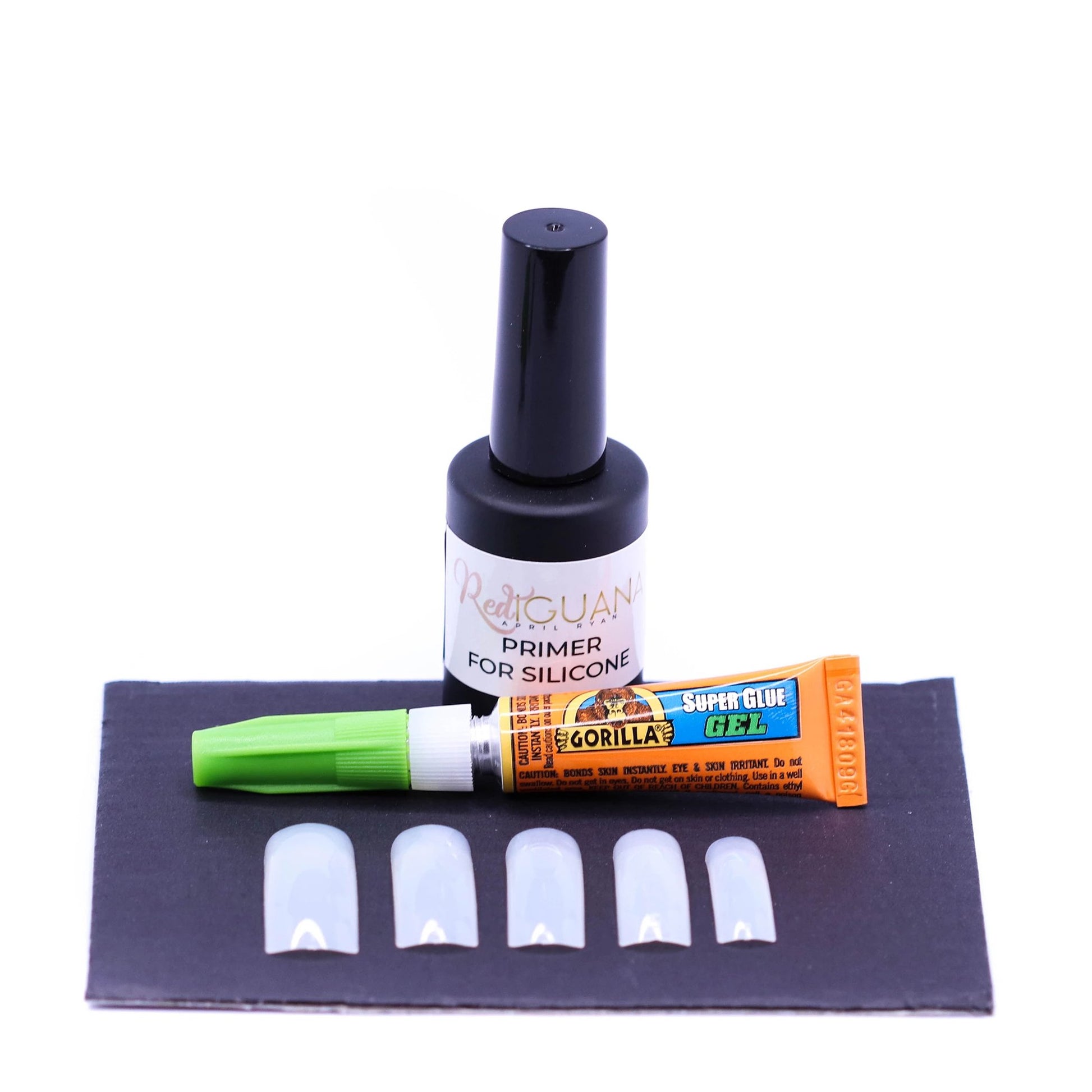 *Instructions: Apply a thin layer of Red Iguana Primer for Silicone Hand onto the silicone nail bed and let it dry for 10 seconds. Insert the base nail tip into the cuticle pocket as deeply as you can. Apply a small amount of glue between the nail tip and silicone finger and gently press the nail to the nail bed. Hold for 30-60 seconds. Make sure to remove any glue excess from the cuticle area.