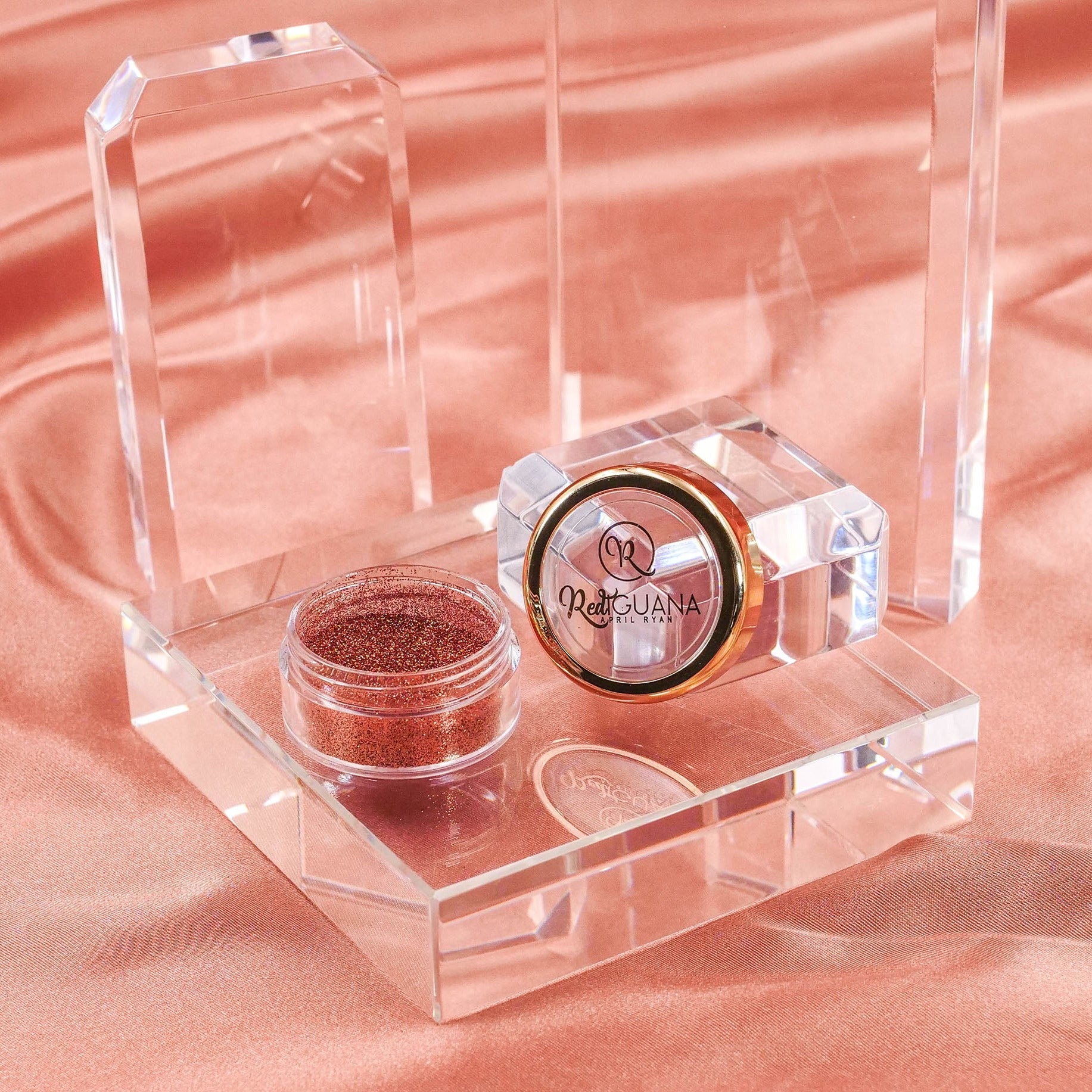 - Encapsulate the glitter by laying a clear acrylic or builder gel