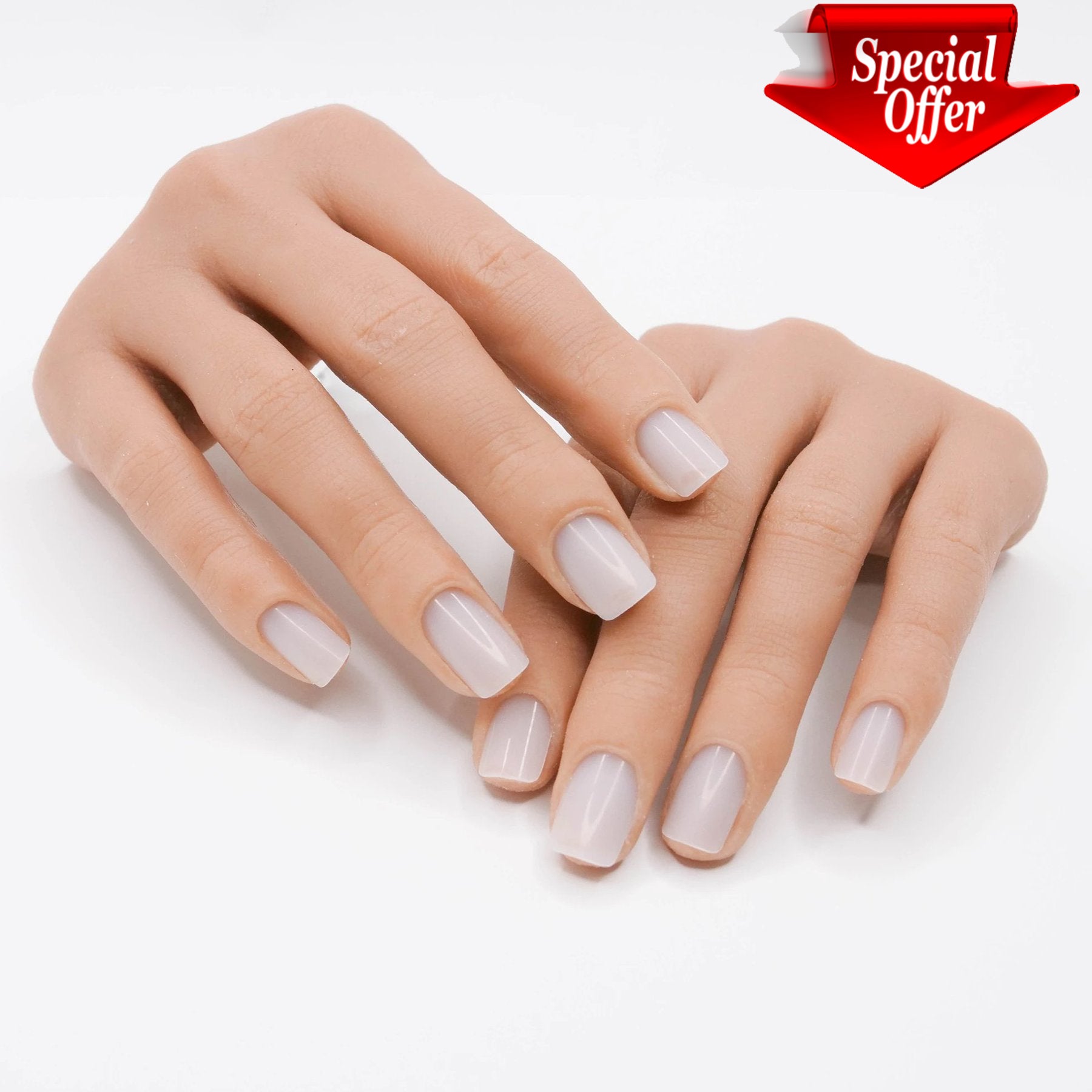 We use long square tips for a more natural effect. Our Base Nail Tips for Silicone Practice Hands are sold separately and are not included with the silicone hand.