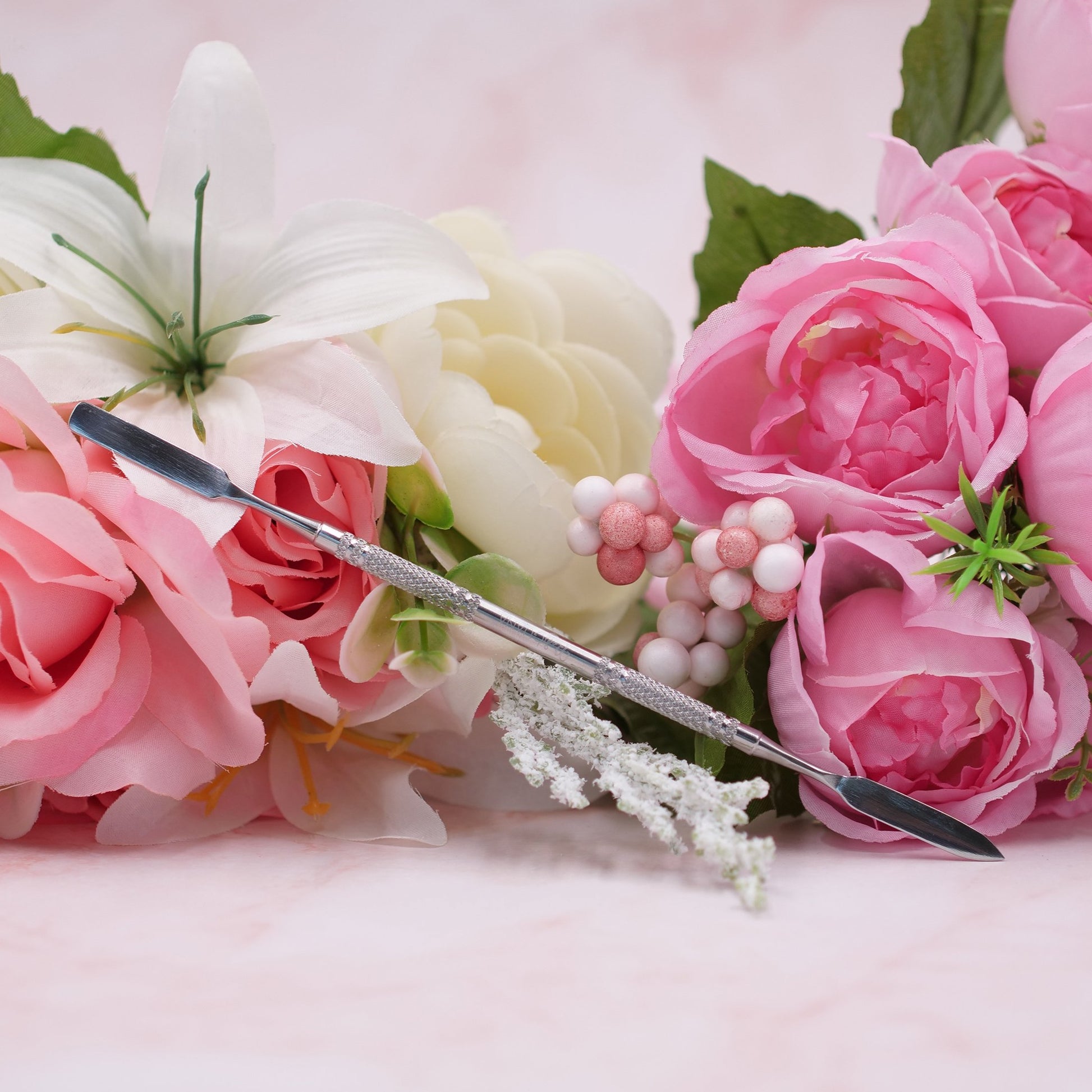 This metallic spatula is an essential tool to use with our Acrygels. The double-sided tool is used to pick up the product easily out of its container.