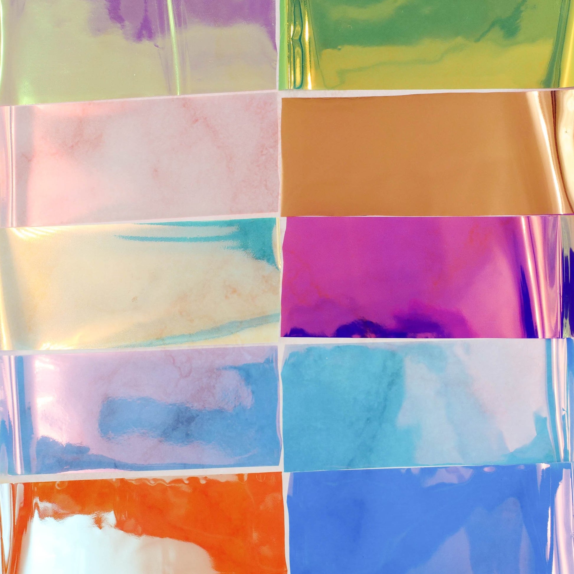 Beautiful iridescent glass film paper in 10 different colors. Perfect for adding reflective iridescent accents on any manicure, these are a must have for creating the popular aurora nail look!