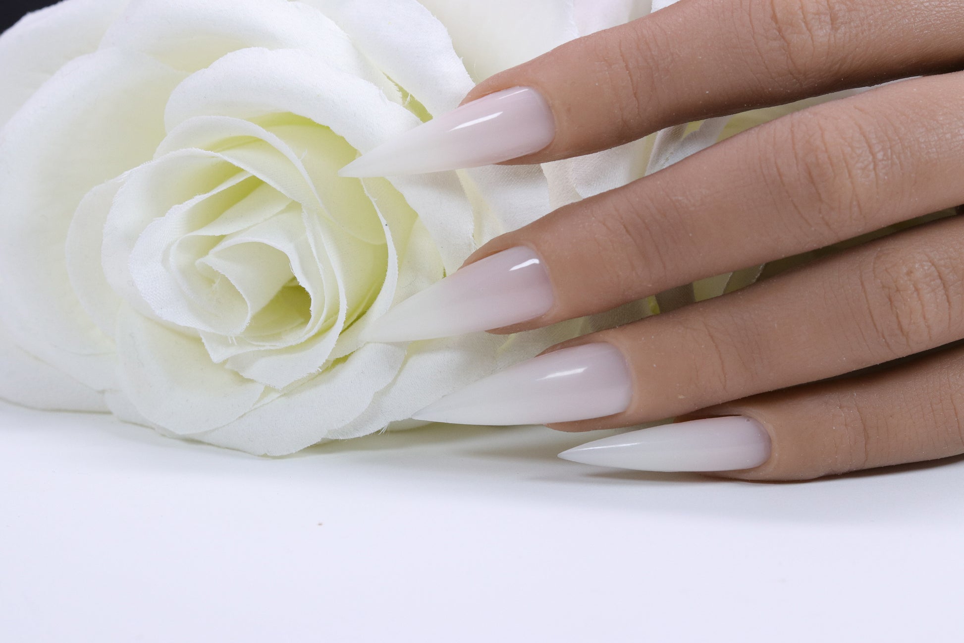 Self-leveling hard gel. Milky white color helps to create natural looking nail tip. Medium to Thick viscosity. 10% fiberglass in the gel which creates a blanket of strength. Perfect for patches or long nails.
